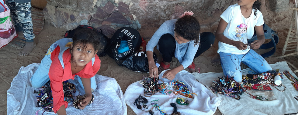 We arrive at the first ecovillage of Sinai, in Bedouin territory; their children welcome us with two olive branches with raw honey, together with the girls with handmade bracelets and necklaces.